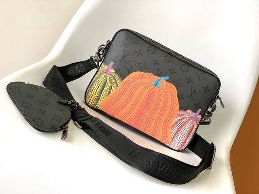 LV x YK Pochette Voyage ini berasal dari seri gabungan Louis Vuitton x Yayoi Kusama, menampilkan bentuk baru yang terinspirasi dari kreasi labu klasik dari seniman terkenal Jepang Yayoi Kusama.Yayoi Kusama adalah seniman avant-garde yang berpengaruh sejak tahun 1960-an, terpesona oleh rasa hangat dan bentuk labu yang menarik.Motif labu pada kanvas Monogram Eclipse Reverse mengubah tas jinjing praktis menjadi koleksi seni.